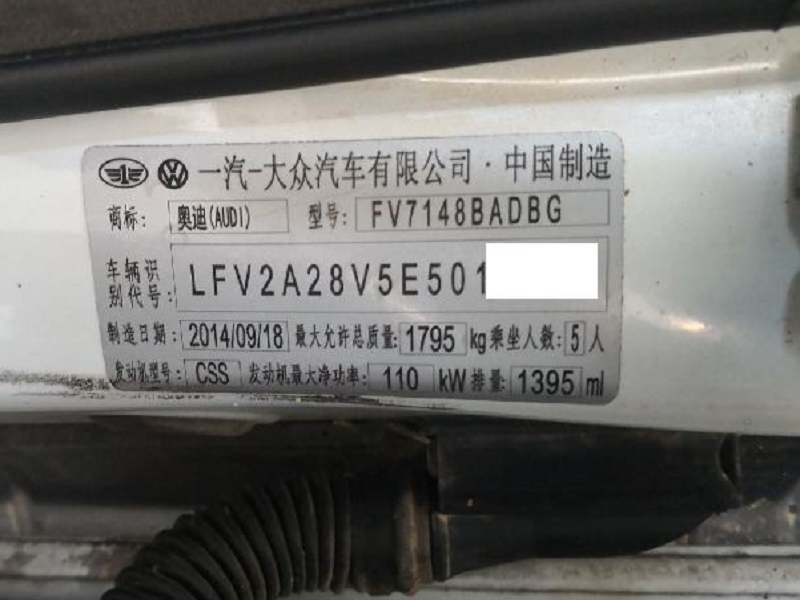 车辆型号:2014一汽奥迪 A3 1.4T 7DCT